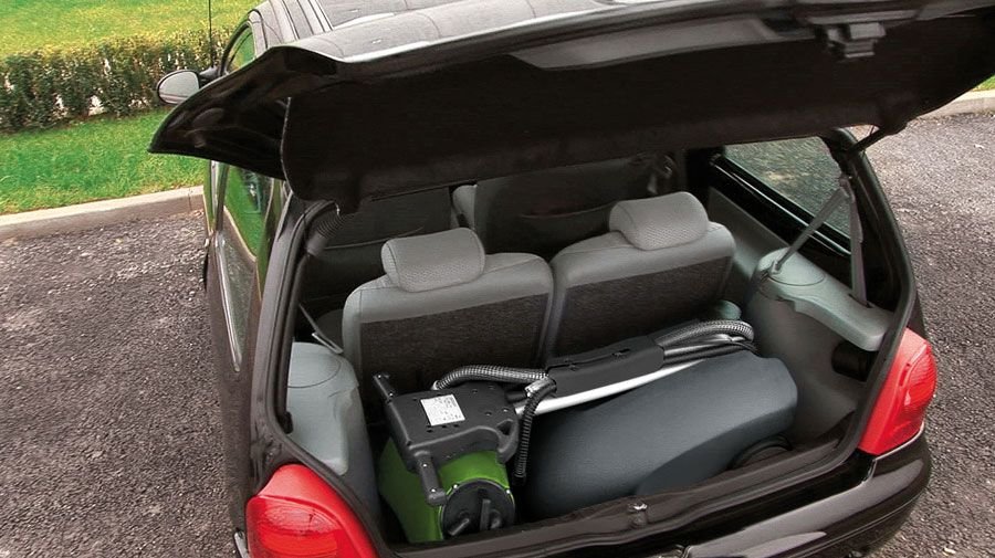 - Snadná přeprava stroje. Ve složeném stavu jej jednoduše nadzvednete za rukojeť a táhnete jej jako kufřík