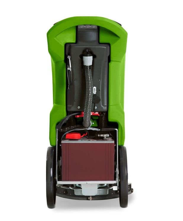 - Mycí stroj s kotoučovým kartáčem, poloautomatickým pohonem a odsáváním špinavé vody poháněný baterií