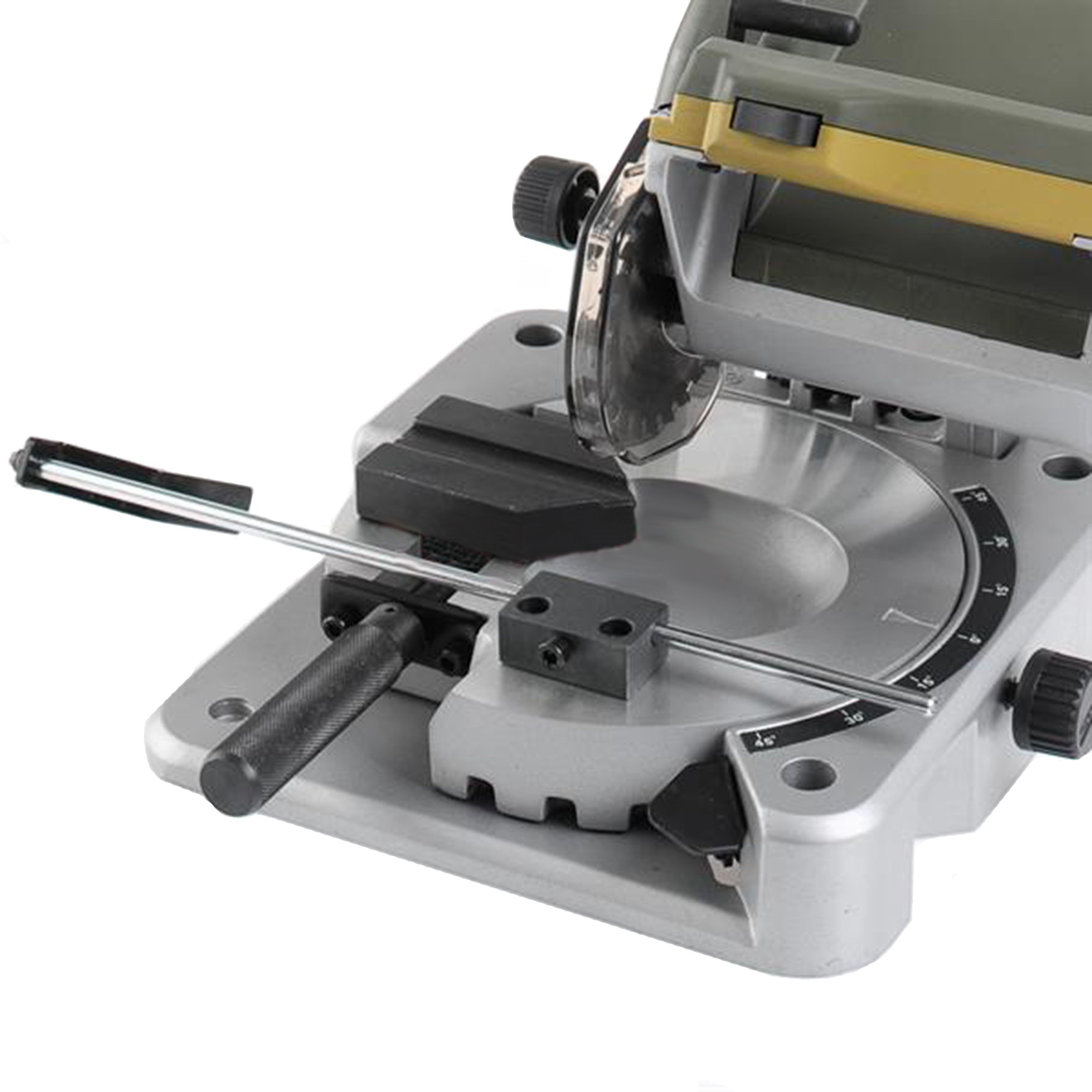 Výhoda při pokosových řezech: otáčí se stůl s upnutým obrobkem, nikoli řezací hlava pily. Pomocí podélného dorazu a na obě strany otočného stolu o 45° můžeme řezat stejně dlouhé obrobky. Integrovan… Více
