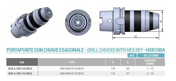 Přesné CNC vrtací sklíčidlo HSK100A H115 rozsah 3-16mm