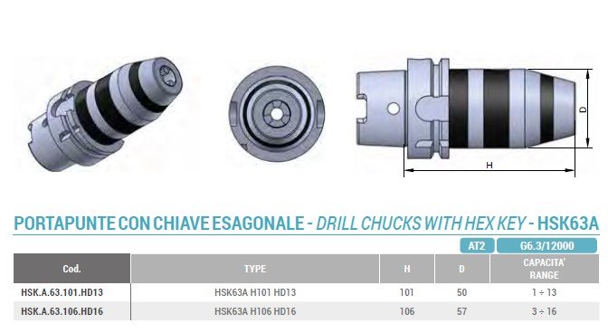 Přesné CNC vrtací sklíčidlo HSK63A H101 rozsah 1-13mm