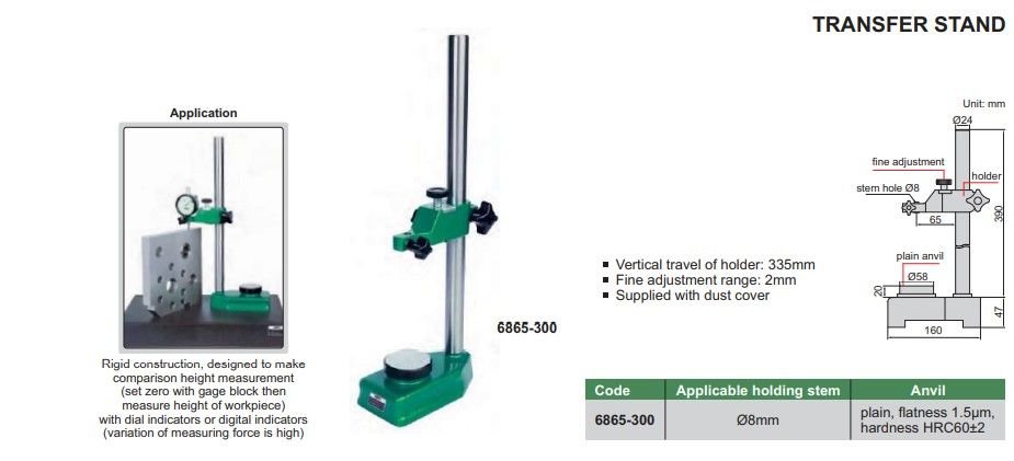 Přesný měřící stojánek 335 mm / pr. 58 mm, jemné stavění, INSIZE 6865-300