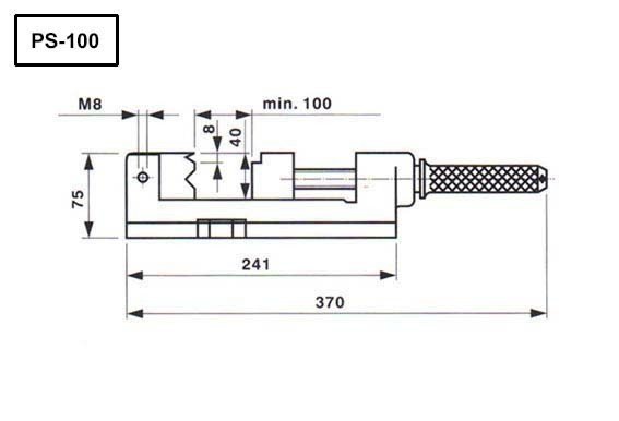 Dílenský svěrák PS 100 pod vrtačku, frézku Podélná a příčná prizma , měkké obrobitelné čelisti Šířka čelistí : 100 mm Rozevření : 100mm Čelisti jsou z vysoce kvalitní oceli , kaleny na 45 HRC ± 5 Upevnění šrouby M12 Další rozměry - viz přiložený rozměrový výkres. Více