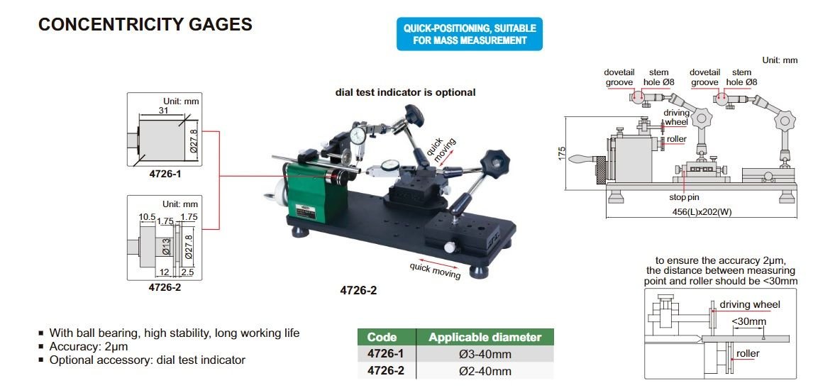 Přístroj na měření soustřednosti INSIZE 4726-2