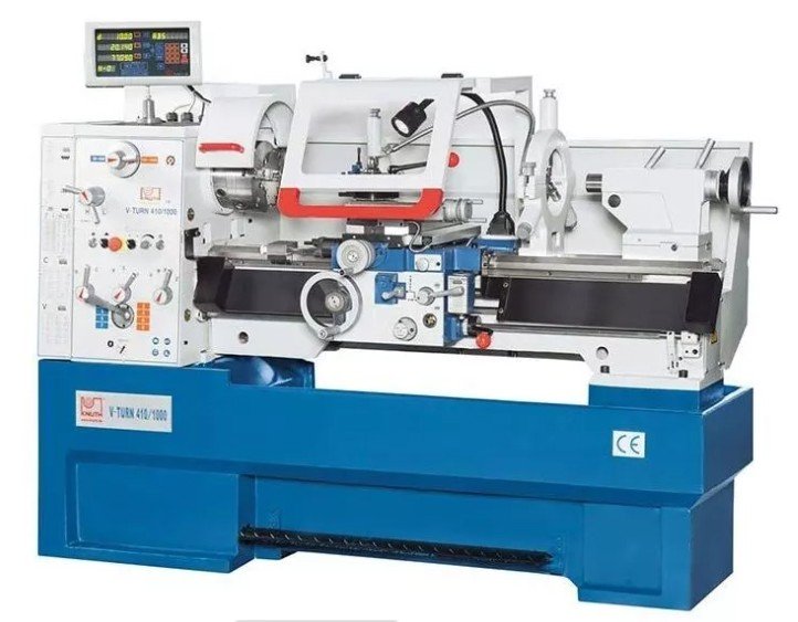 Univerzální soustruh V-Turn 410/1000 představuje robustní a přesný stroj určený pro profesionální použití ve strojírenské výrobě i nástrojárnách. Stroj je dodáván kompletně smontovaný, včetně indikace polohy ve 3 osách s integrovaným zobrazením otáček vřetena.