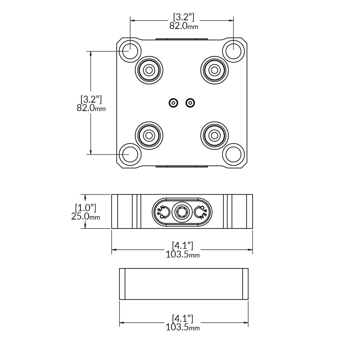 RL52A-44 Základní upínací deska single - 52mm - RockLock 103,5mm x 103,5mm x 25,0mm