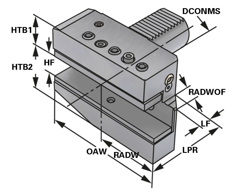 Radiální nástrojový držák – typ B5 pravý dlouhý (DIN ISO 10889 [DIN 69880] – VDI)
