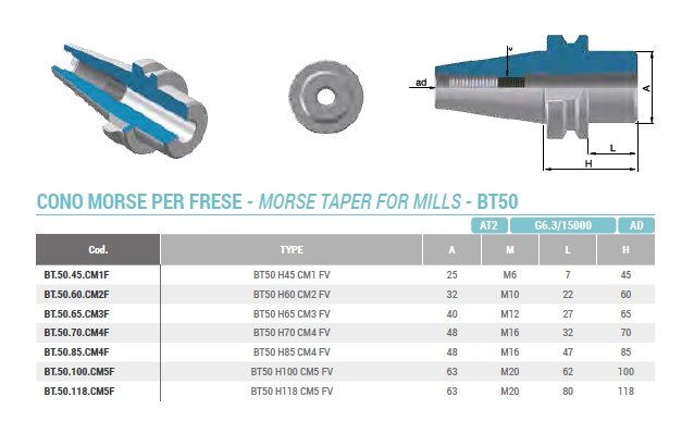Redukční pouzdro pro frézy BT50 (AD) prodloužené H100 MK5