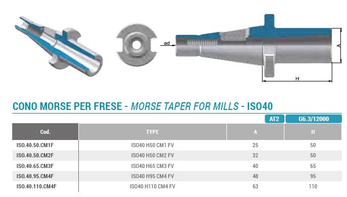 Redukční pouzdro pro frézy ISO40 (AD) krátké H50 MK1