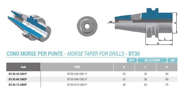 Redukční pouzdro pro vrtáky BT30 (AD) krátké H75 MK3