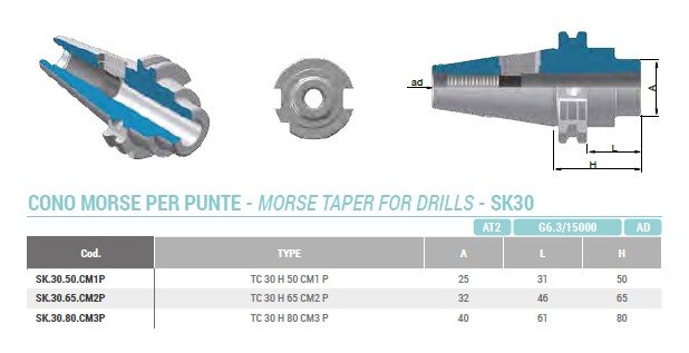 Redukční pouzdro pro vrtáky SK30 (AD) krátké H65 MK2