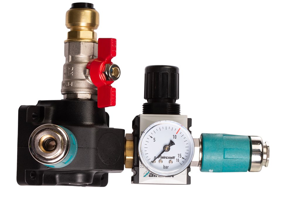Rozdělovací krabice se 2 bezp. rychlospojkami, ventilem, regulátorem ø 15 mm
