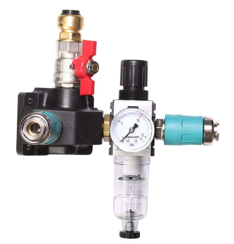 Rozdělovací krabice se 2 bezp. rychlospojkami, ventilem, regulátorem s filtrem ø 15 mm