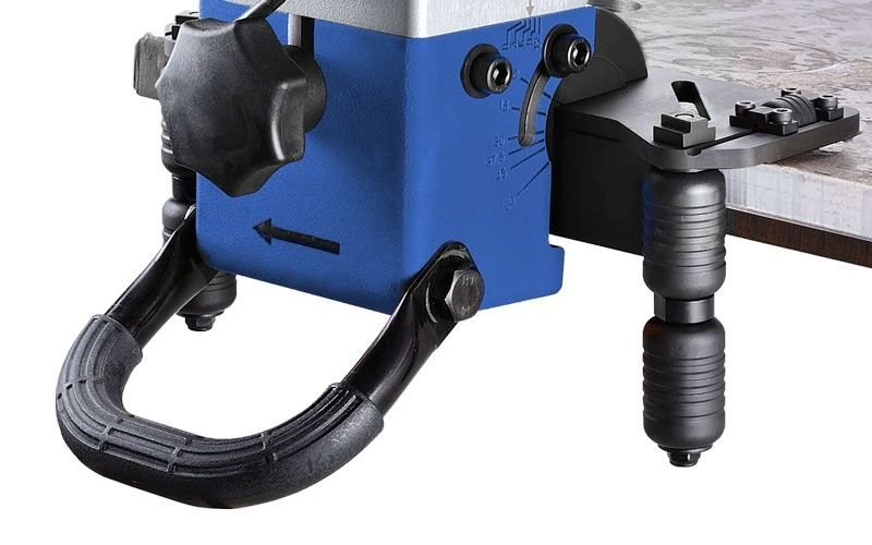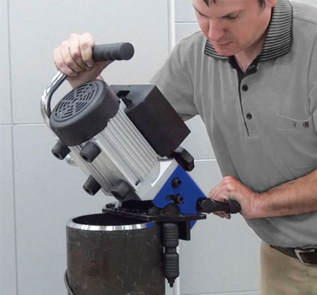 Ruční úkosovačka k odstraňování otřepů u ušlechtilé oceli a dalších materiálů s plynulou regulací úhlu 0-60°. Ohraňování až do velikosti úkosu 21 mm. Nastavitelné vodicí kladky umožňují také ohraňování trubek.