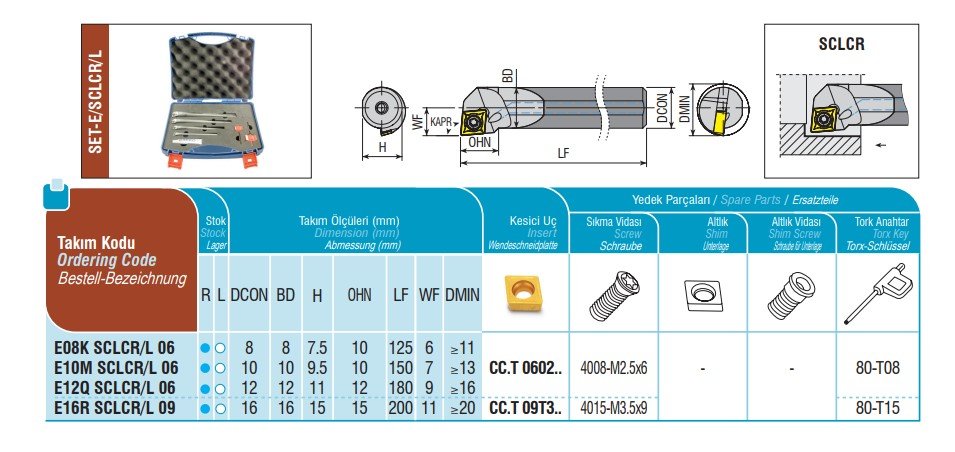 SET-E/SCLCR - Sada vnitřních antivibračních soustružnických nožů