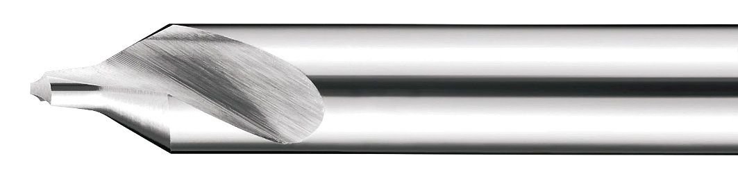 Krátké provedení. K 20/30 jemnozrný karbid. Vrcholový úhel 120° čtyřplošný výbrus, středící úhel 60°. Šroubovice ca. 30°- 35°. Povlak PVD.