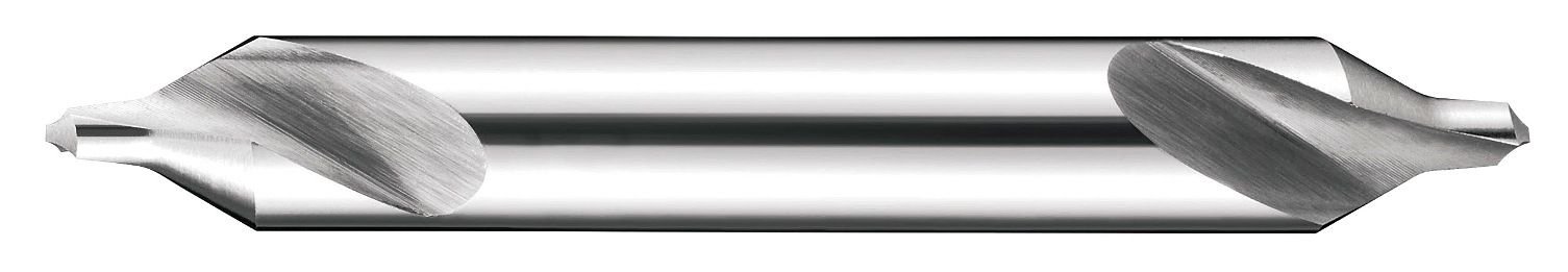 Krátké provedení. K 20/30 jemnozrný karbid. Vrcholový úhel 120° čtyřplošný výbrus, středící úhel 60°. Šroubovice ca. 30°- 35°. Povlak PVD.