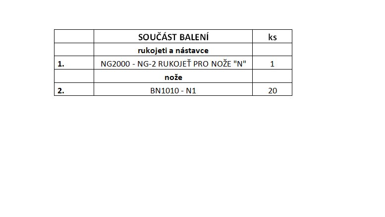 Sada obsahuje rukojeť NG2000, která upne všechny nože typu N (průměr 2,6 mm). Úložný prostor pro náhradní nože. Poskytuje maximální komfort pro Vaši ruku.
