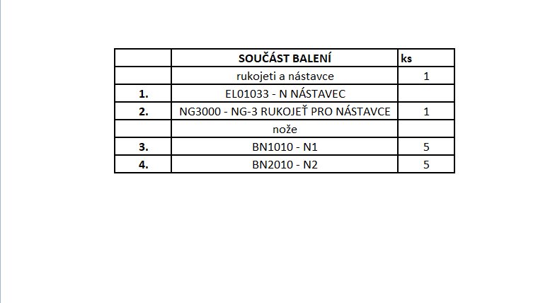 Sada obsahuje rukojeť NG2000, která upne všechny nože typu N (průměr 2,6 mm). Úložný prostor pro náhradní nože. Poskytuje maximální komfort pro Vaši ruku.