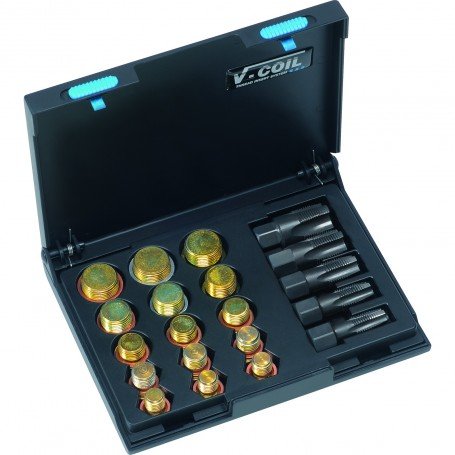 Sada k opravě olejových van M13,15,17, 20, 24 obsahuje závitníky M 13 x 1,5 M 15 x 1,5 M 17 x 1,5 M 20 x 1,5 M 24 x 1,5 -hliníkové a měděné závitové vložky pojistné šrouby