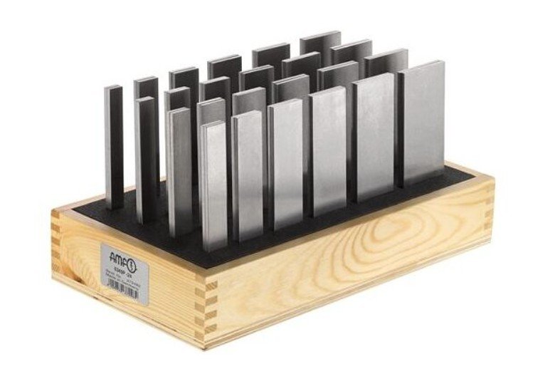 Přesné paralelní podložky dodávané po párech, uložené v dřevěném stojanu. Hladké, jemně broušené a povrchově kalené provedení v kvalitativní úrovni „přesné“.