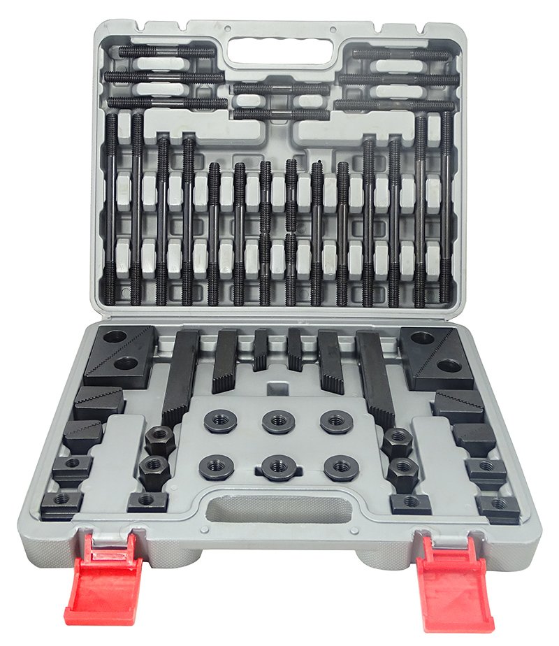 Sada obsahuje: matice do T-drážek - 6 ks matice s nákružkem - 6 ks připojovací matice - 4 ks odstupňované kostky - 6 ks odstupňované upínky - 12 ks trny - 24 ks (po 4 ks o délce 75, 100, 125, 150, 175 a 200 mm