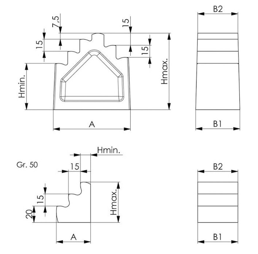 Schodišťové bloky s krokovým odstupňováním po 7,5 mm. Vyrobené z odlitku šedé litiny, povrchově lakované pro vyšší odolnost. Základna i stupňové plochy jsou přesně frézovan… Více