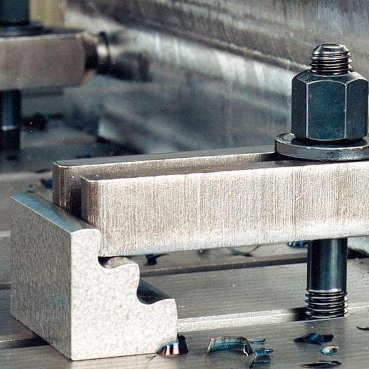 Schodišťové bloky s krokovým odstupňováním po 7,5 mm. Vyrobené z odlitku šedé litiny, povrchově lakované pro vyšší odolnost. Základna i stupňové plochy jsou přesně frézované, což zajišťuje stabilitu a spolehlivé upnutí při obrábění.