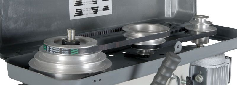 Sloupová vrtačka s řemenovým pohonem a digitálním ukazatelem otáček a vrtací hloubky na vrtací hlavě.
