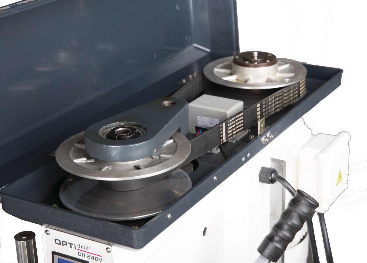 Sloupová vrtačka s plynulým nastavením otáček pomocí mechanického variátoru.