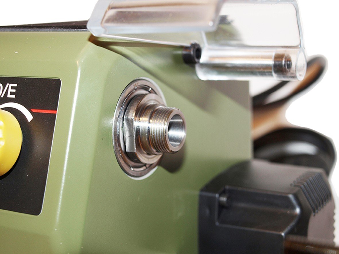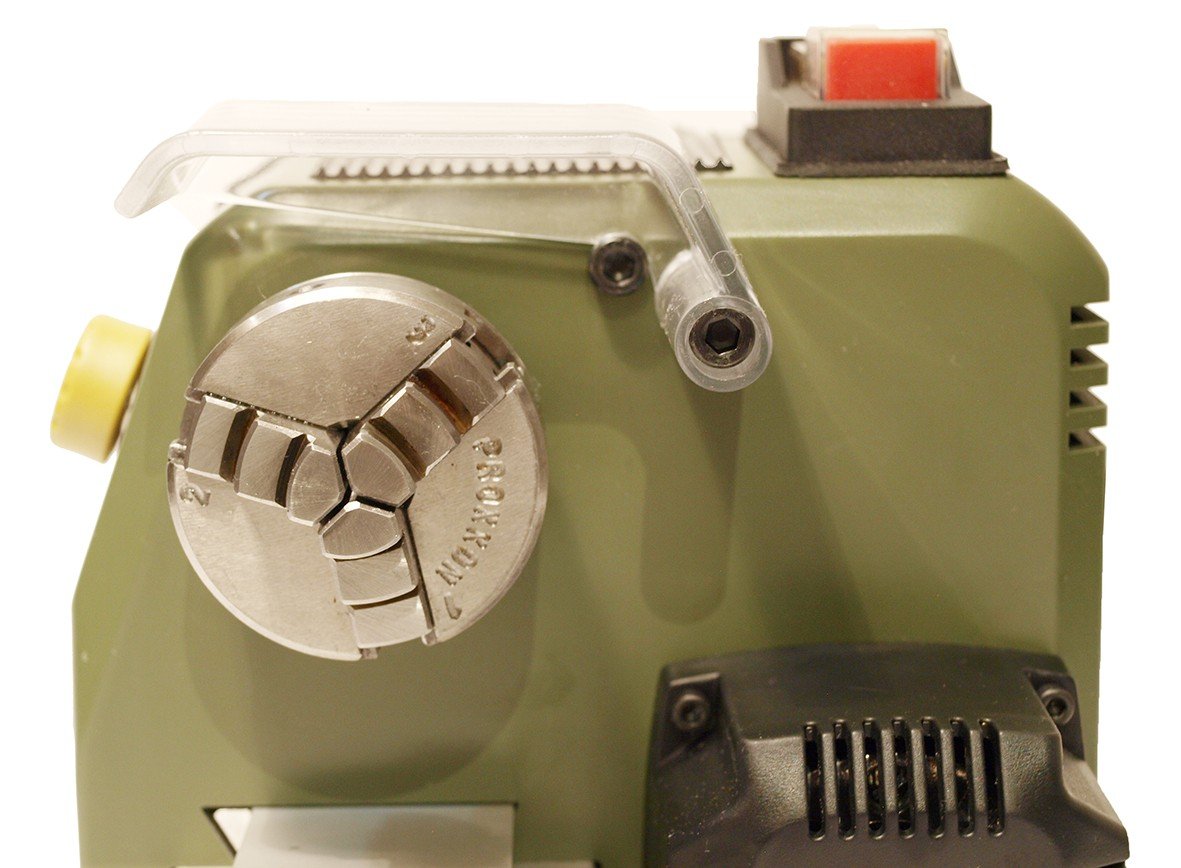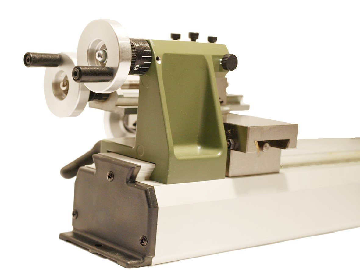 Vřeteno soustruhu je přesný tlakový hliníkový odlitek ložiskově uložené s průchodem o Ø 8,5 mm pro vložení dlouhých tyčí.