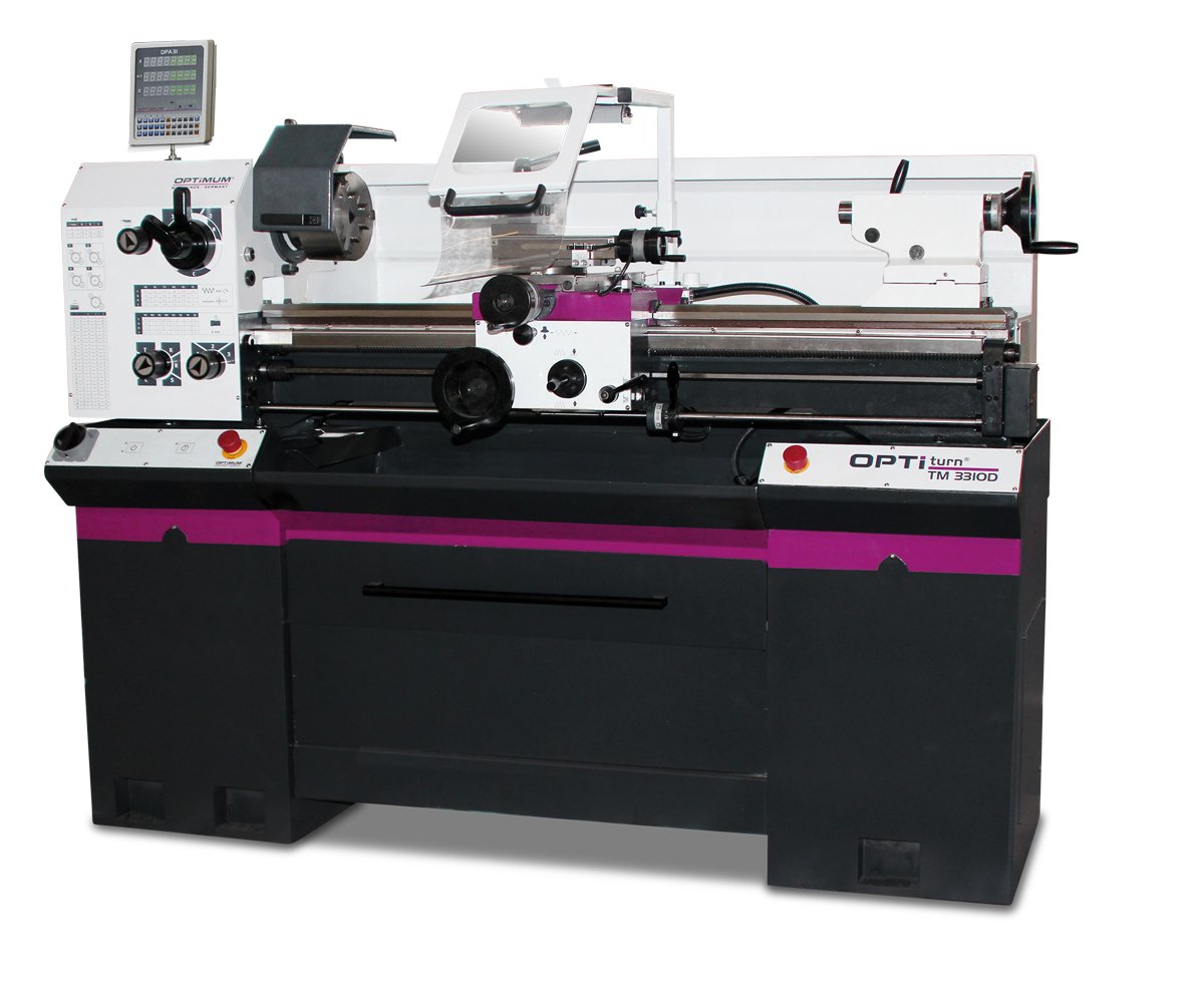 Plně vybavený soustruh s vodicím a tažným šroubem a s digitálním odměřováním polohy DPA 31 Plus. Volitelně s plynulou regulací otáček pomocí frekvenčního měniče Lenze.