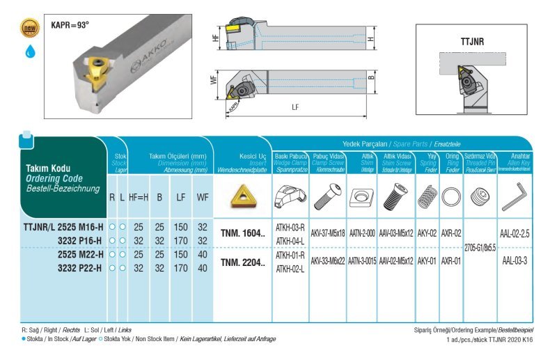 Soustružnický držák VBD AKKO JET TTJNR 2525 M16-H ( s vnitřním chlazením )