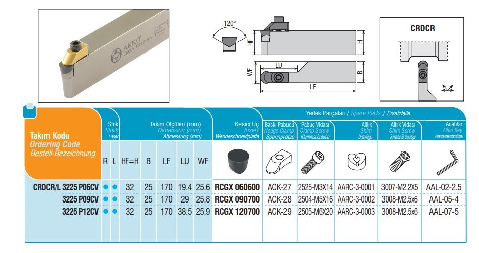 | Typ břitové destičky ISO soustružení | Pro VBD typu RCGX 0907.. |