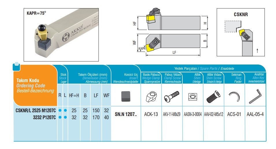 Více informací o kompletním sortimentu nástrojových držáků AKKO najdete na www.akko.cz. Níže ke stažení katalogový list ve formát JPG. Přiložené obrázky jsou ilustrační a náleží pravořeznému provedení držáku starší označení nástroje : HS-C-01108 Více
