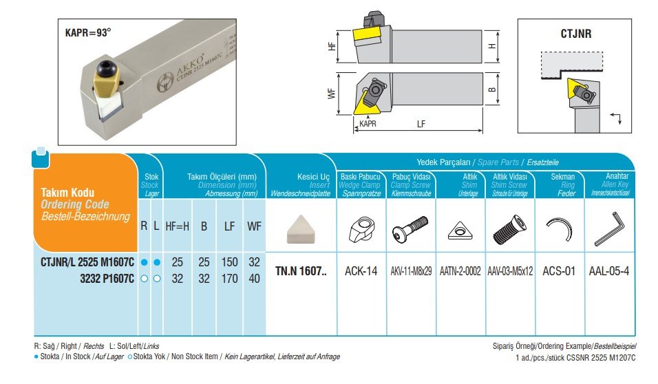 Více informací o kompletním sortimentu nástrojových držáků AKKO najdete na www.akko.cz. Níže ke stažení katalogový list ve formát JPG. Přiložené obrázky jsou ilustrační a náleží pravořeznému provedení držáku starší označení nástroje : HS-C-01101 Více