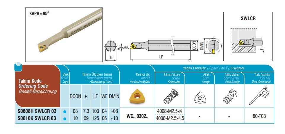 Způsob upnutí řezné destičky (VBD) koresponduje s jejím typem a je dle ISO označen písmenem obsaženým i v kódovém označení nože. Upínání typu ISO S je určeno především pro menší průřezy nožového držáku, pro vnější i vnitřní soustružení. VBD je v lůžku fixována speciálním šroubem,… Více