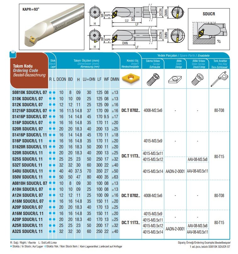Způsob upnutí řezné destičky (VBD) koresponduje s jejím typem a je dle ISO označen písmenem obsaženým i v kódovém označení nože. Upínání typu ISO S je určeno především pro menší průřezy nožového držáku, pro vnější i vnitřní soustružení. VBD je v lůžku fixována speciálním šroubem,… Více