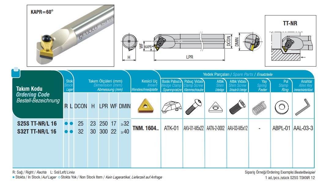 Držák je kompatibilní s ISO výměnnými břitovými destičkami typu TNMG. pro přechod na položku VBD TNM.. klikněte ZDE Více informací o kompletním sortimentu nástrojových držáků AKKO najdete na www.akko.cz. Níže ke stažení katalogový list ve formát JPG. Přiložené obrázky jsou ilustrační a náleží pravořeznému provedení držáku