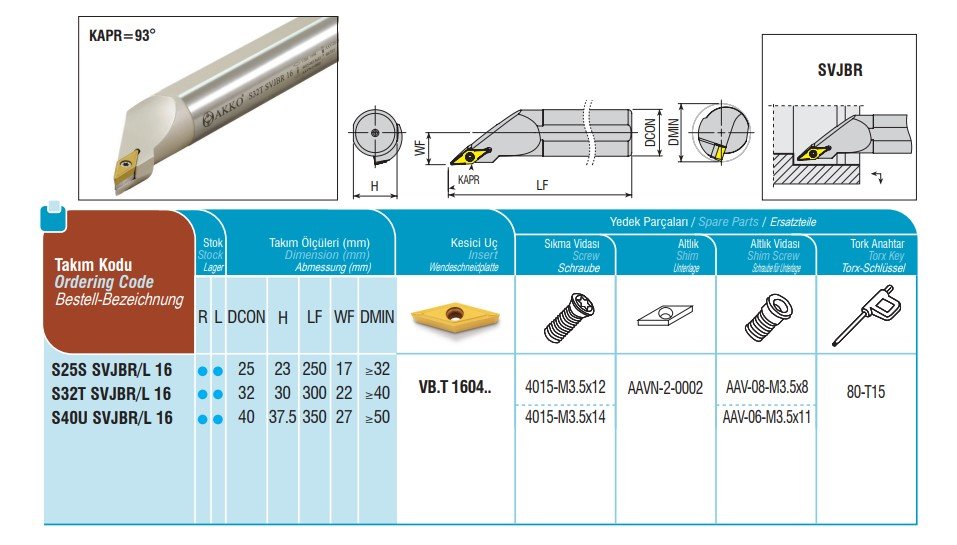 Způsob upnutí řezné destičky (VBD) koresponduje s jejím typem a je dle ISO označen písmenem obsaženým i v kódovém označení nože. Upínání typu ISO S je určeno především pro menší průřezy nožového držáku, pro vnější i vnitřní soustružení. VBD je v lůžku fixována speciálním šroubem,… Více