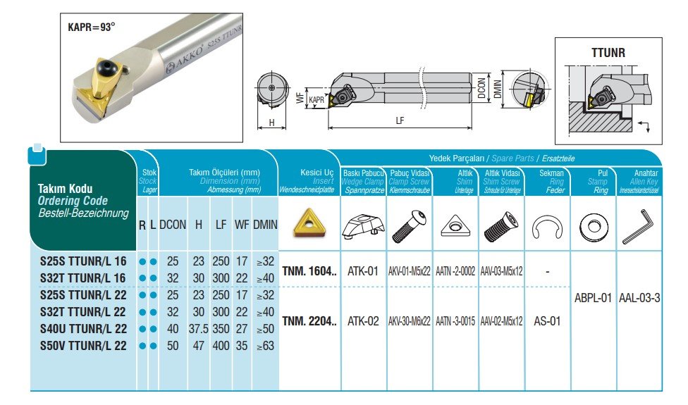 Držák je kompatibilní s ISO výměnnými břitovými destičkami typu TNMG. pro přechod na položku VBD TNM.. klikněte ZDE Více informací o kompletním sortimentu nástrojových držáků AKKO najdete na www.akko.cz. Níže ke stažení katalogový list ve formát JPG. Přiložené obrázky jsou ilustrační a náleží pravořeznému provedení držáku