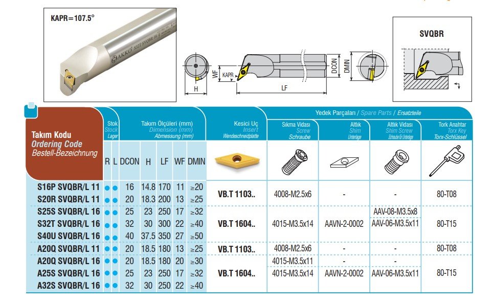 Způsob upnutí řezné destičky (VBD) koresponduje s jejím typem a je dle ISO označen písmenem obsaženým i v kódovém označení nože. Upínání typu ISO S je určeno především pro menší průřezy nožového držáku, pro vnější i vnitřní soustružení. VBD je v lůžku fixována speciálním šroubem,… Více