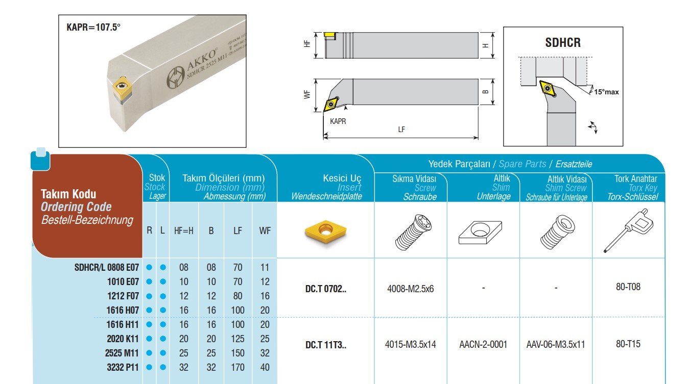 Způsob upnutí řezné destičky (VBD) koresponduje s jejím typem a je dle ISO označen písmenem obsaženým i v kódovém označení nože. Upínání typu ISO S je určeno především pro menší průřezy nožového držáku, pro vnější i vnitřní soustružení. VBD je v lůžku fixována speciálním šroubem,… Více