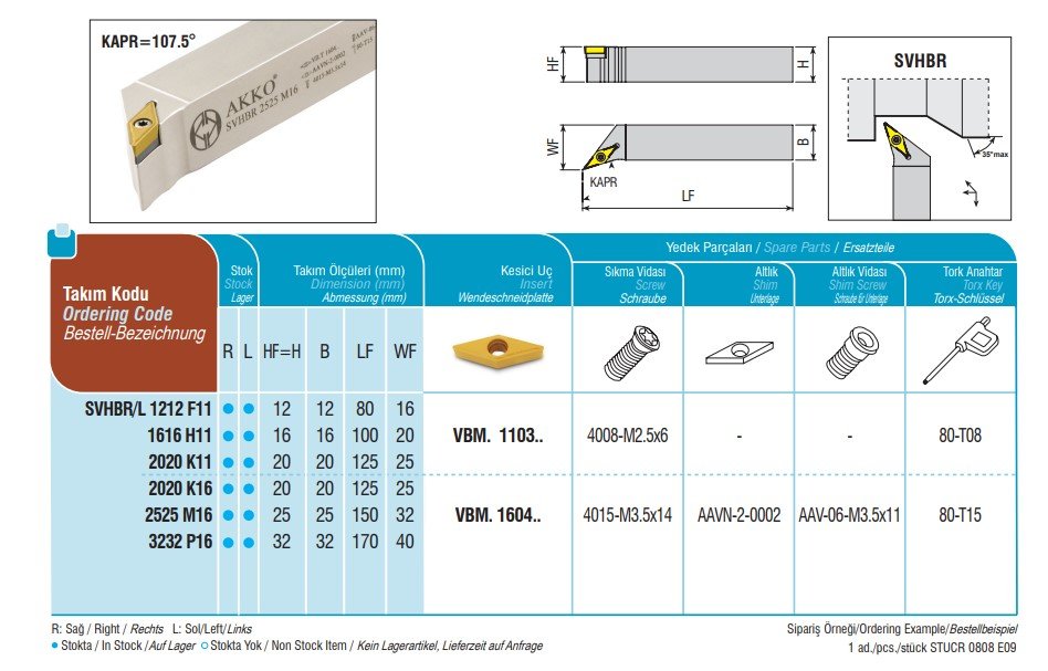 | Typ břitové destičky ISO soustružení | Pro VBD typu VB.T 1103.. |