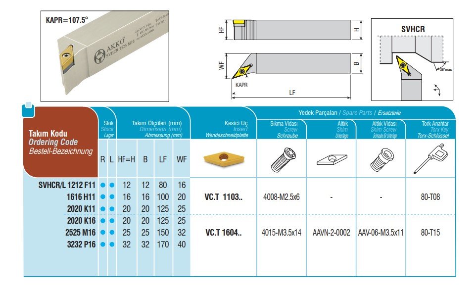 | Typ břitové destičky ISO soustružení | Pro VBD typu VC.T 1604.. |