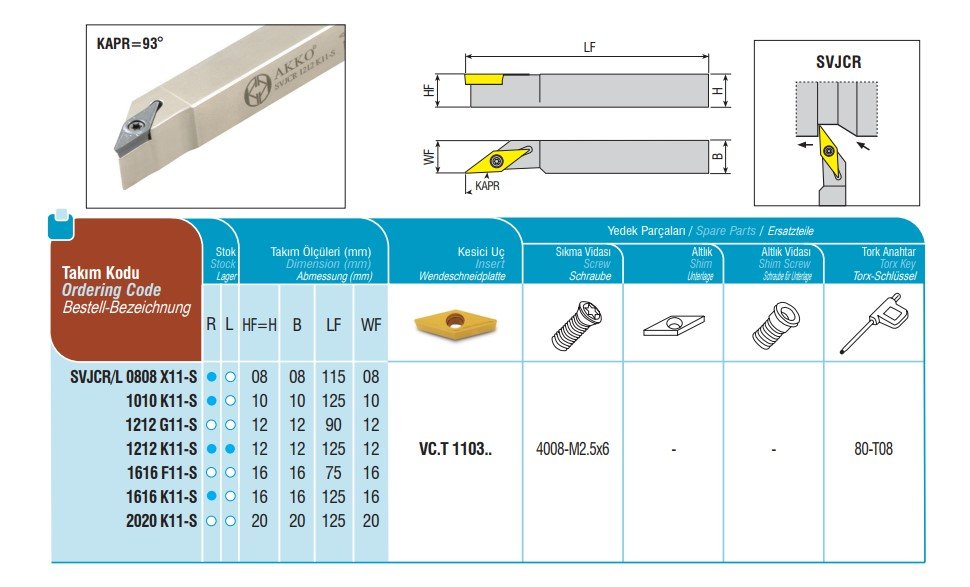 Držák je kompatibilní s ISO výměnnými břitovými destičkami typu VCMT. pro přechod na položku VCM VBM.. klikněte ZDE Více informací o kompletním sortimentu nástrojových držáků AKKO najdete na www.akko.cz. Níže ke stažení katalogový list ve formát JPG. Přiložené obrázky jsou… Více