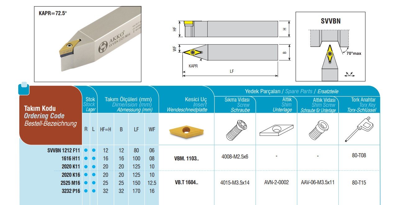 | Typ břitové destičky ISO soustružení | Pro VBD typu VB.T 1604.. |