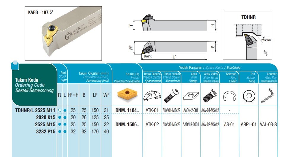 Držák je kompatibilní s ISO výměnnými břitovými destičkami typu DNM. 1506.
