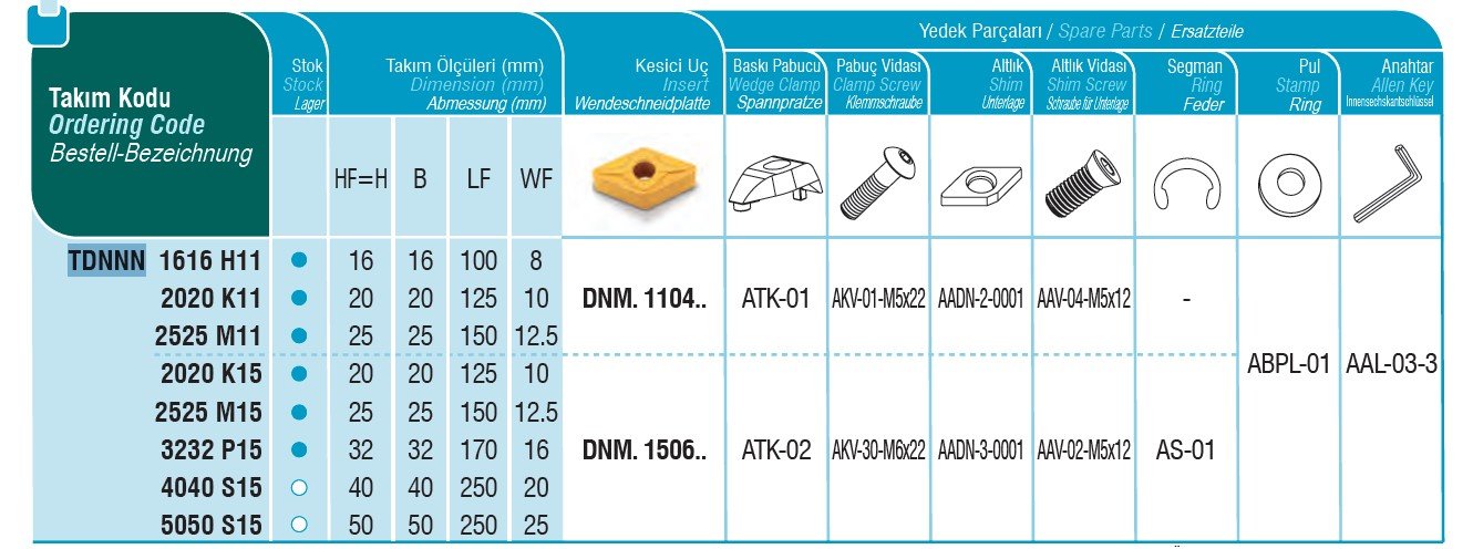 | Typ břitové destičky ISO soustružení | Pro VBD typu DNM. 1104.. |
