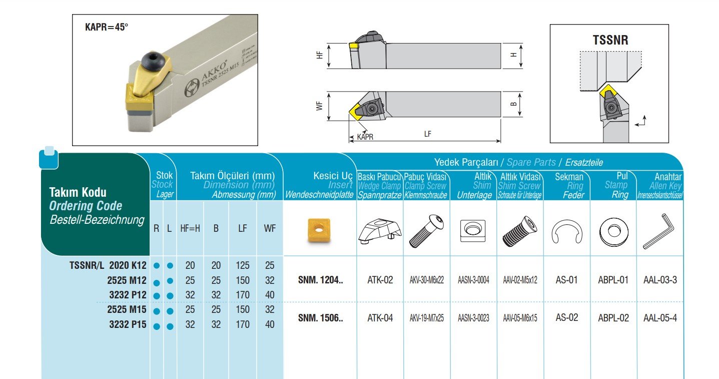 Držák je kompatibilní s ISO výměnnými břitovými destičkami typu SNMG. Pro přechod na nákup výměnných břitových destiček použijte níže související produkty.Níže ke stažení katalogový list ve formátu PDF.Přiložené obrázky jsou ilustrační a náleží pravořeznému provedení držáku.starší… Více